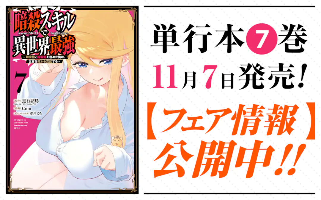 『暗殺スキルで異世界最強 ~錬金術と暗殺術を極めた俺は、世界を陰から支配する~』 コミックス第7巻 2025年11月7日発売!!