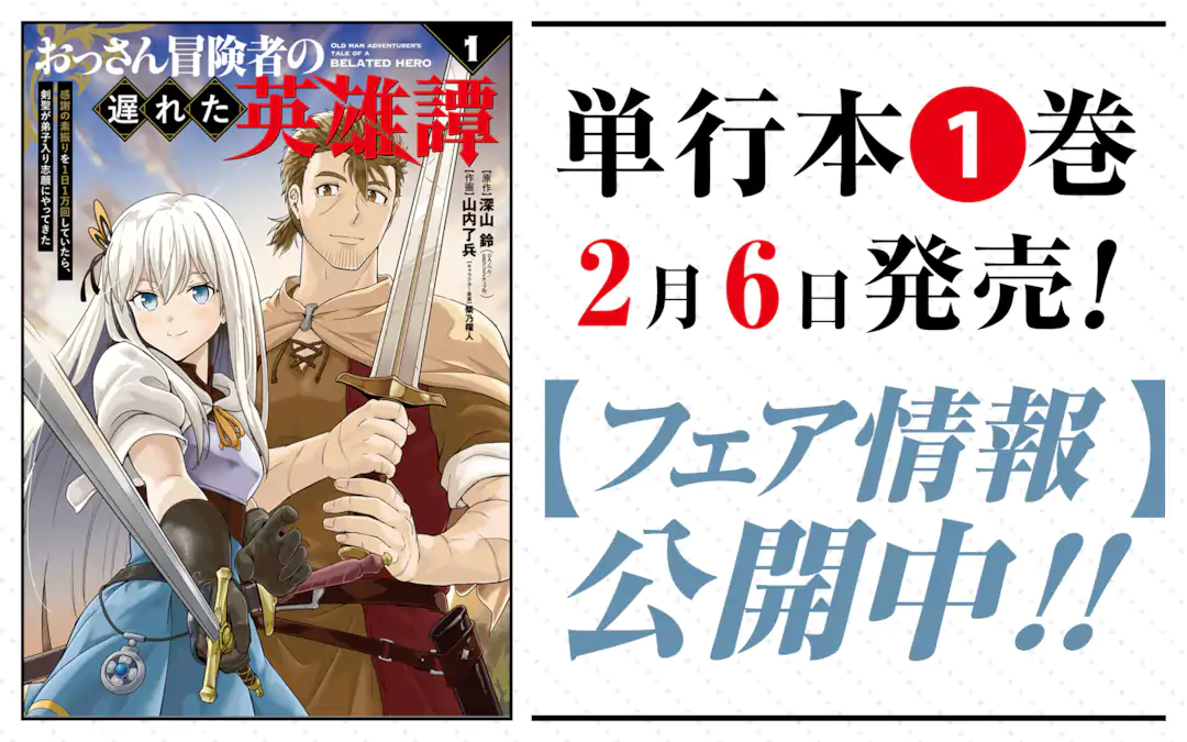 『おっさん冒険者の遅れた英雄譚 感謝の素振りを1日1万回していたら、剣聖が弟子入り志願にやってきた』コミックス第1巻 2026年2月6日 発売!!