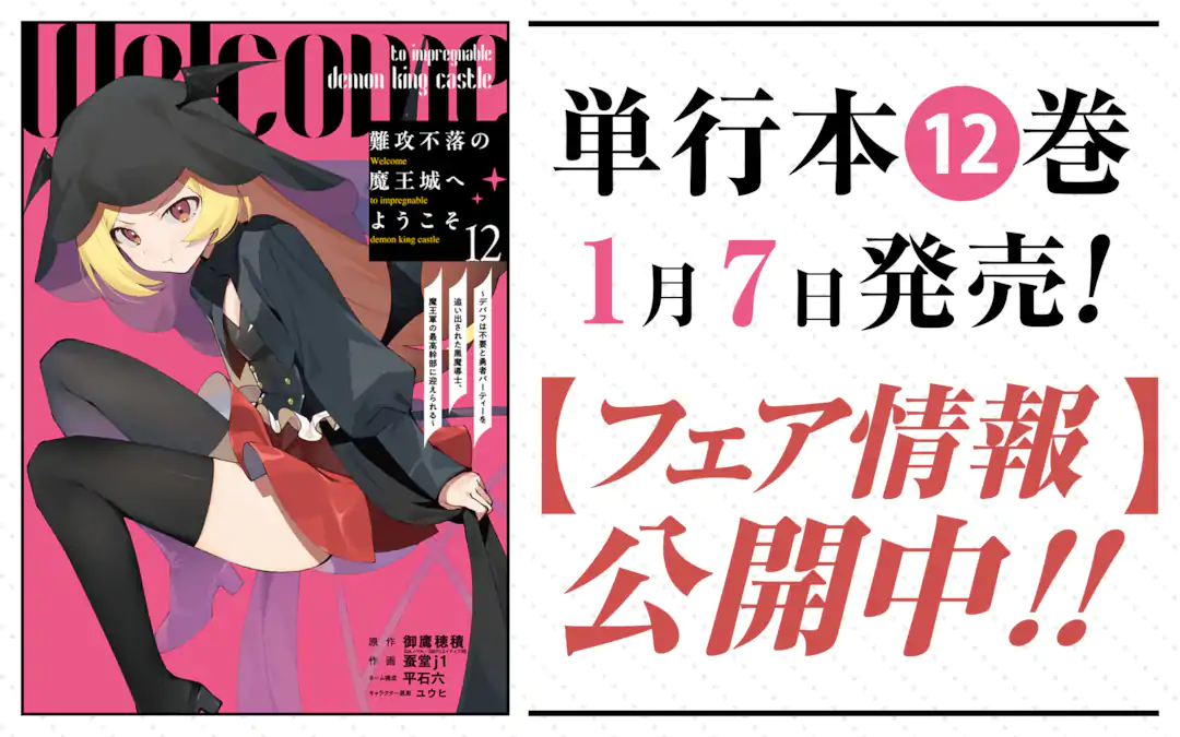 『難攻不落の魔王城へようこそ ~デバフは不要と勇者パーティーを追い出された黒魔導士、魔王軍の最高幹部に迎えられる~』コミックス第12巻 2026年1月7日 発売!!